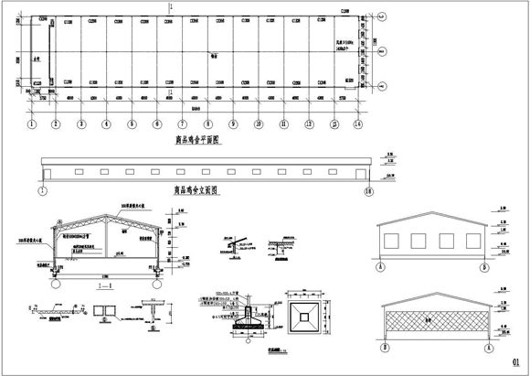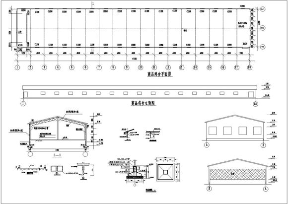 本资料为鸡场建筑设计方案图纸,图纸包含平面、立面、剖面、大样等。设计总体一般,可以为做养鸡场项目人员做参考之用。