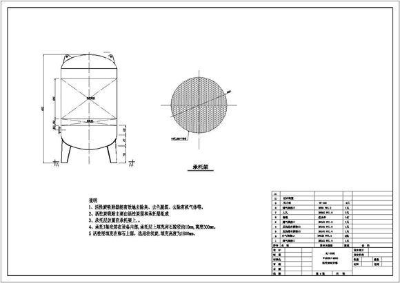 主体设备是生物活性炭罐设备图纸,包括设备的平面图、剖面图、局部详图和相关的设备说明,比较详细。