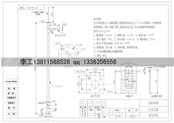 道路监控杆6米摄像机立杆云台监控杆设计图纸