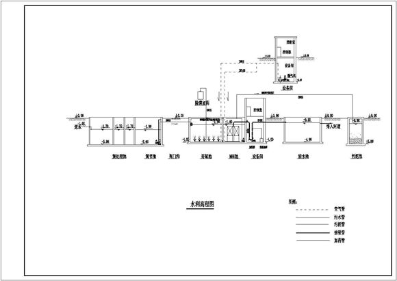 本图纸是属于600吨的MBR。图纸包含:工艺流程图、平面设计图、曝气曝气以及溢流管通气管、管道总平面图、水利高程图、总平面布置图、设备平面布置图、管道总平面图、提升泵出水、污泥和絮凝加药及出水管平面图