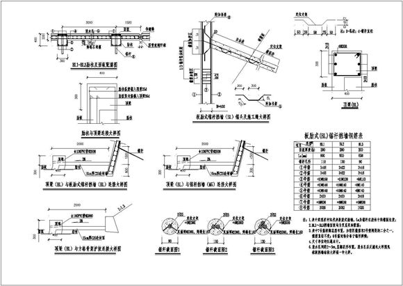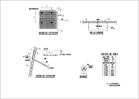 该图纸为某工程项目板肋式锚杆挡墙构造详图,图纸包括:肋柱及面板配筋图,肋柱与顶梁连接大样图,板肋式锚杆挡墙(BL)锚头及施工缝大样图,顶梁(BL)与锚杆挡墙(MG)连接大样图等。