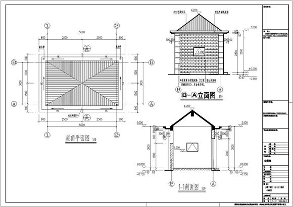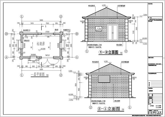 垃圾收集点垃圾房的建筑设计总说明,平剖图,屋面做法,墙面装饰装修做法示意图。