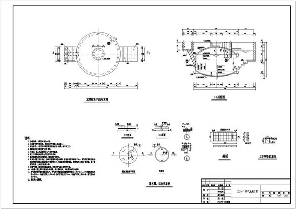4、5、30、50、80、100立方沼气池设计施工图,图纸共6张,为沼气池标准图集GBT4750-2002中的标准图。
