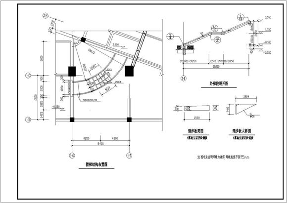 某项目钢结构弧形楼梯全套结构施工图