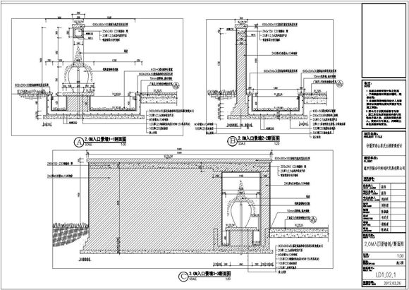 某别墅带涌泉水池镂空景墙施工图纸,景墙高2米,图纸含平面图、立面图、多个剖面图等。