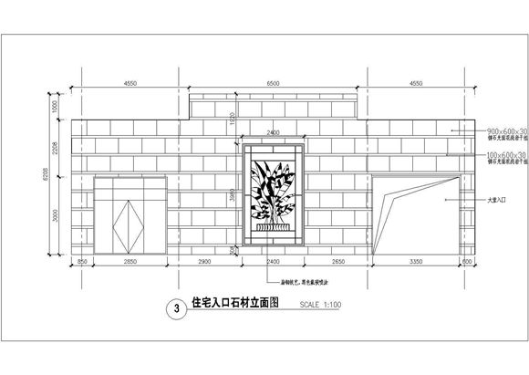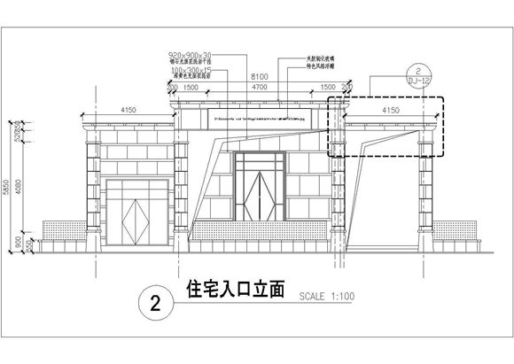 本图纸为:某小区住宅单元门入口门头全套施工图,有无障碍坡道、台阶以及顶部木架玻璃,图纸含平面图、正立面、侧立面、剖面图、顶面图、无障碍坡道做法、台阶做法及大样图。