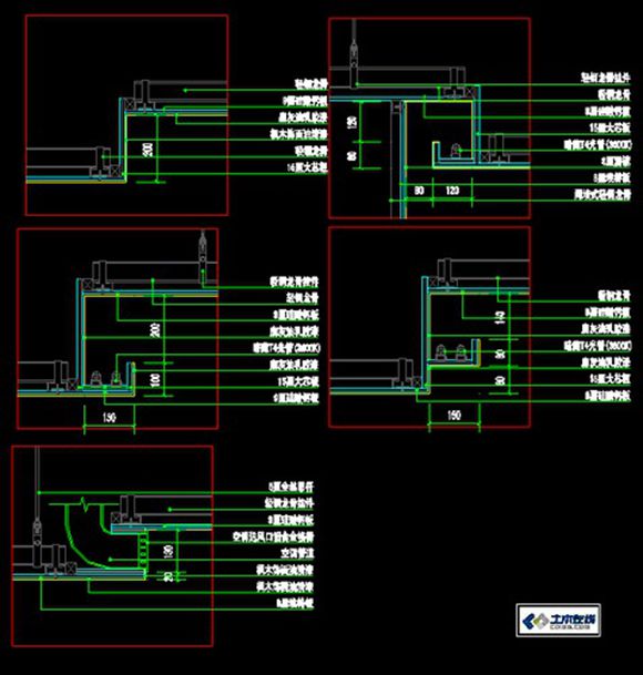 几种常见的吊顶剖面图,有详细的材料和尺寸标注